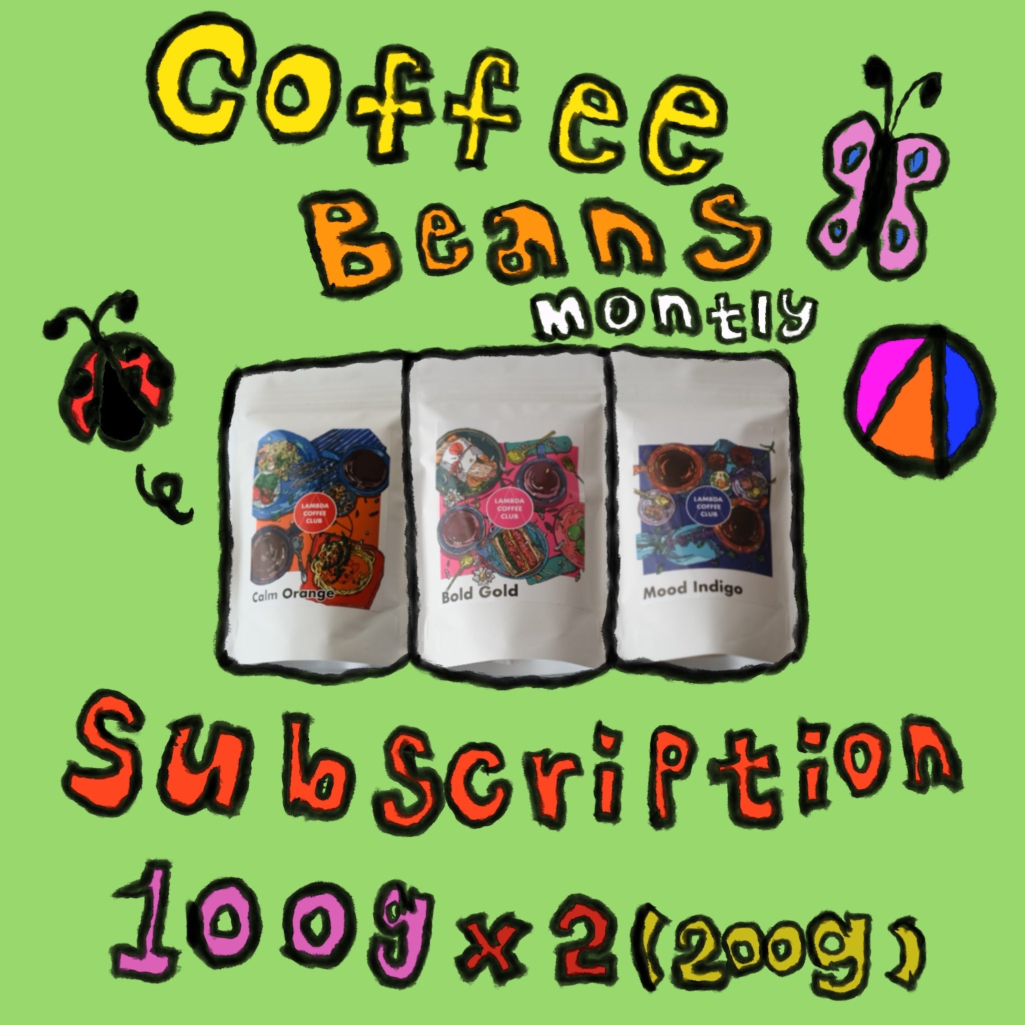 LAMBDA COFFEE CLUBの3種類のコーヒー豆を100gずつ2パックセットで毎月お送りするサブスクプランです!美味しいコーヒーをいつでも手元に置いておけるサービスですので、2種類のブレンドコーヒーをさらに組み合わせて飲んでいただくこともできます。